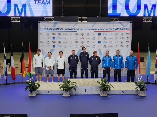 대한민국은 청주시청 정유진, 부산시청 하광철, 상무 조세종 선수가 10M 런닝타겟 혼합 남자 단체전에 참가해 은메달을 목에 걸었다.