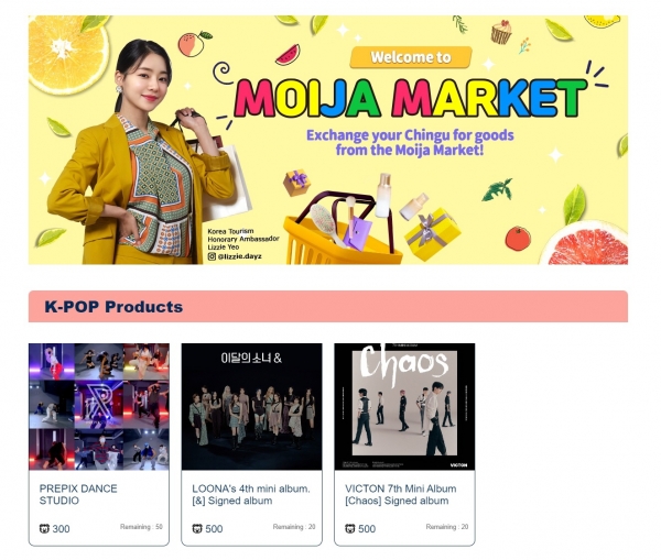 18일부터 운영하는 ‘모이자마켓’은 이들 한류 팬들에게 한국 관련 상품과 서비스를 체험할 수 있게 해 주는 온라인 몰이다.