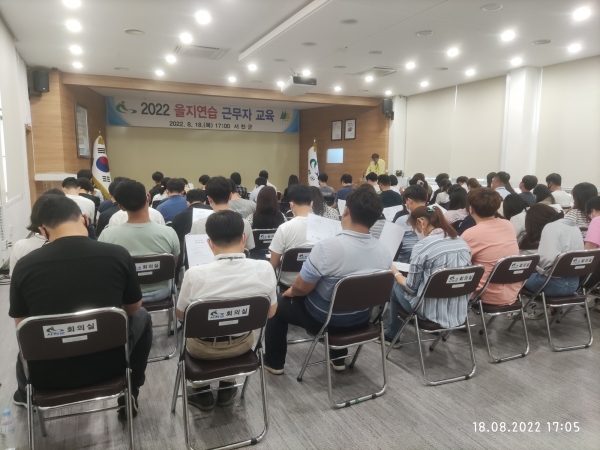 [세종타임즈] 서천군이 지난 18일 군청 대회의실에서 을지연습 근무자 100여명을 대상으로 2022년 을지연습 대비 근무자 사전교육을 실시했다.