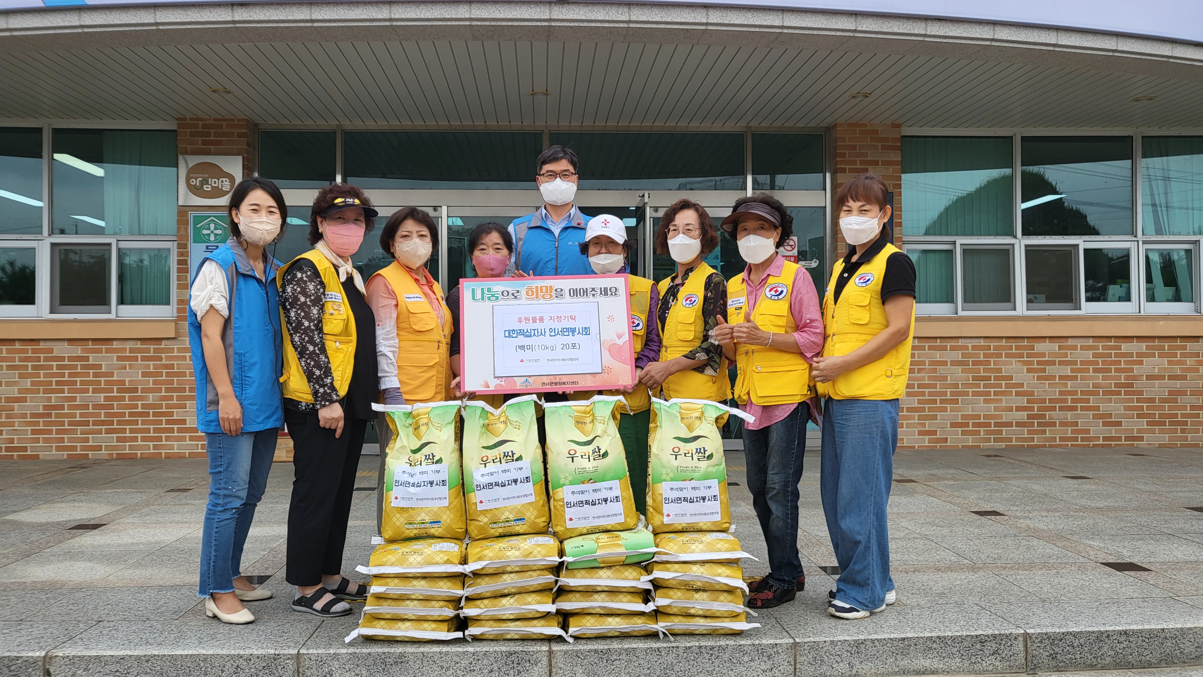 [세종타임즈] 대한적십자사 연서면봉사회가 추석 명절을 앞두고 25일 세종특별자치시 연서면지역사회보장협의체에 백미 20포를 기탁했다.