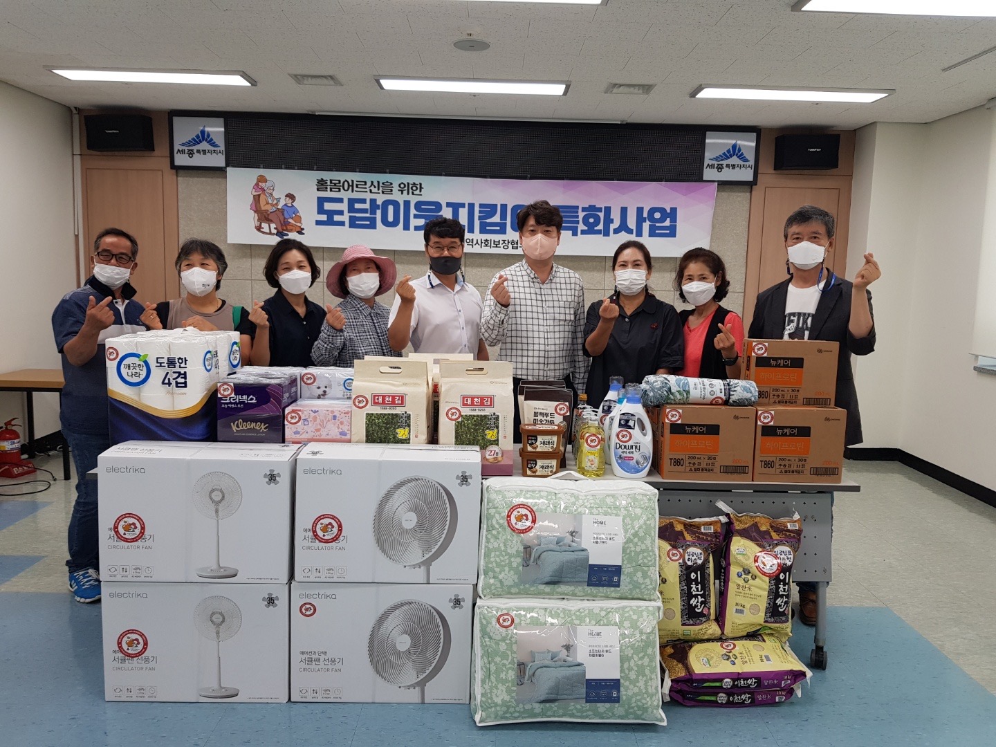 [세종타임즈] 세종특별자치시 도담동지역사회보장협의체가 25일 도담동행정복지센터에서 ‘도담이웃지킴이’ 맞춤형 물품 전달식을 가졌다.