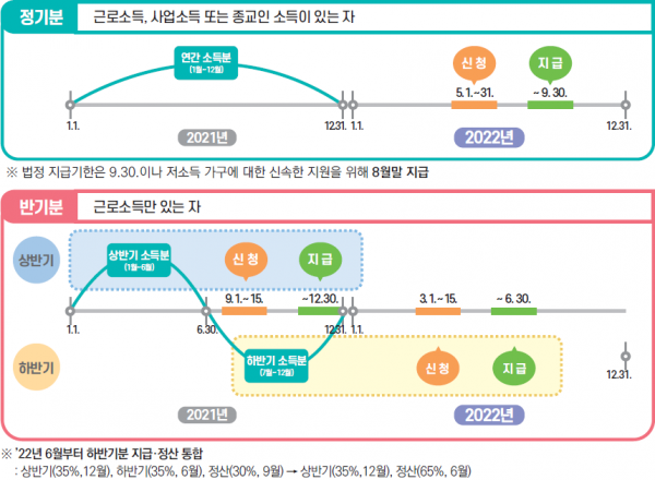 [세종타임즈] 국세청은 코로나19 및 물가 상승 등으로 어려움을 겪고 있는 저소득 가구를 신속하게 지원하기 위해 장려금을 법정기한보다 한 달 이상 앞당겨 오는 26일 지급한다.