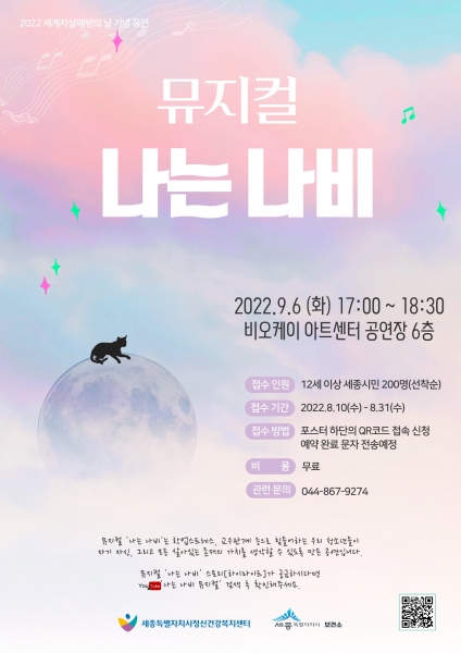 [세종타임즈] 세종시정신건강복지센터가 세계 자살예방의 날을 기념해 오는 9월 6일 비오케이 아트센터에서 ‘나는 나비 뮤지컬’을 연다.