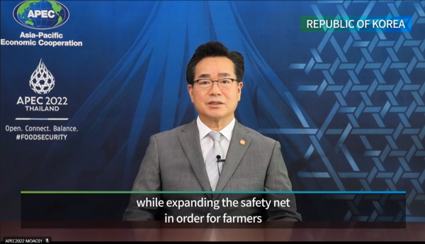 정황근 장관은 이번 회의에서 아·태 지역의 농업과 식품시스템의 건설적 미래를 위해 아시아태평양경제협력체 회원국과 함께 지혜를 모으길 바란다고 하면서 회원국들과 다각적으로 식량안보 및 디지털 혁신 발전방안을 모색하겠다고 부연했다.