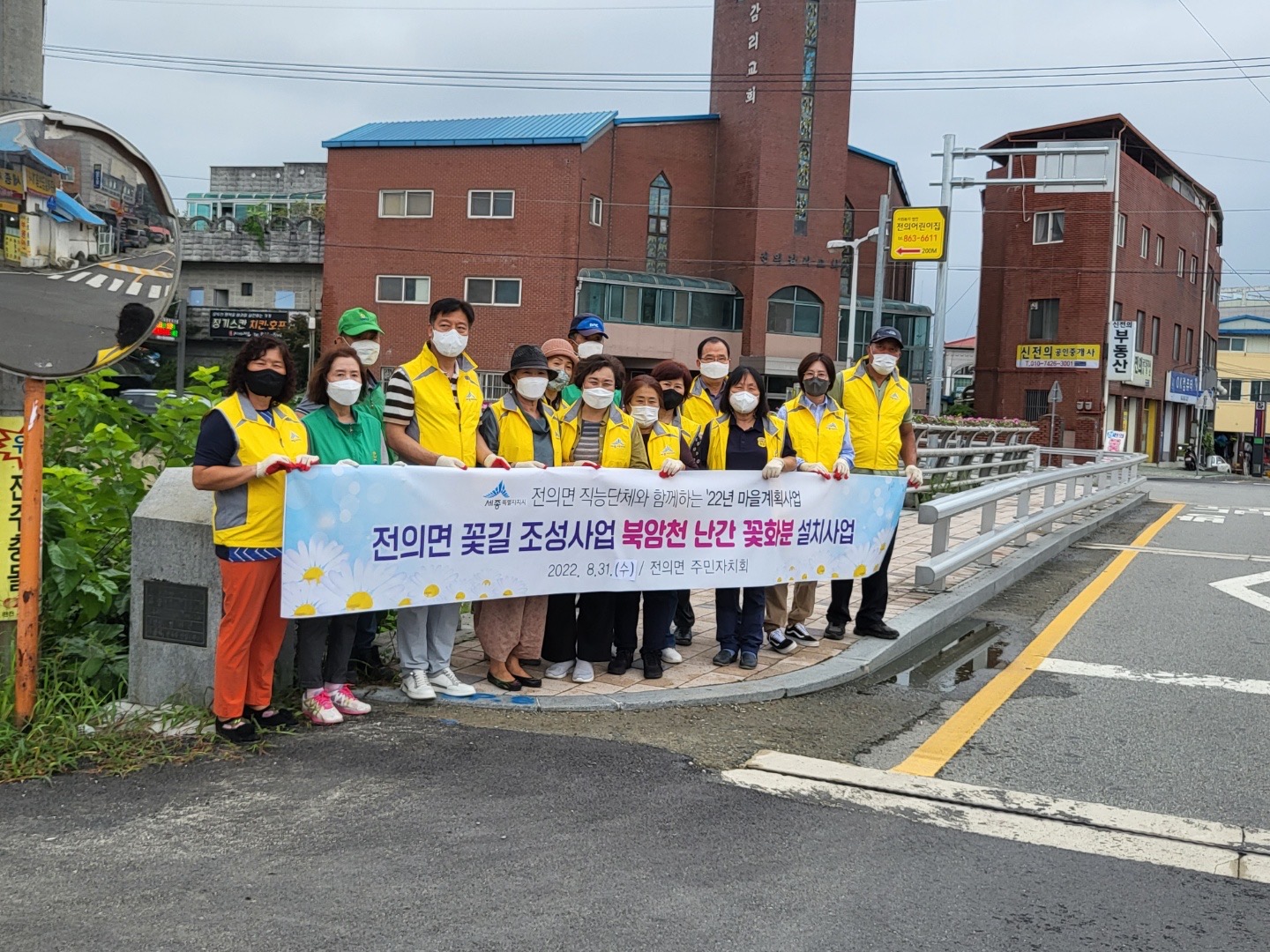 이날 행사는 2021년 마을계획사업부터 지속된 ‘전의면 꽃길 조성사업’의 일환으로 진행돼, 계절에 맞는 다양한 꽃을 식재한 북암천은 아름다운 주민의 쉼터로 자리매김하고 있다.
