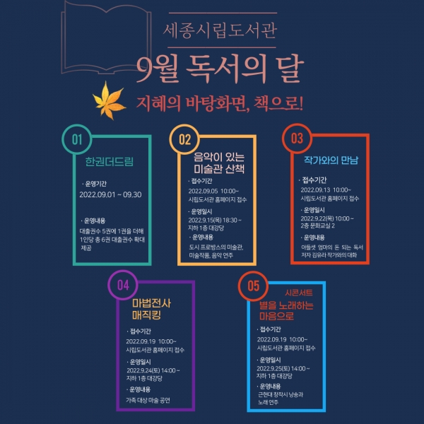 9월 한 달간 열리는 독서의 달 행사는 ‘지혜의 바탕화면, 책으로’을 주제로 다채롭게 펼쳐진다.
