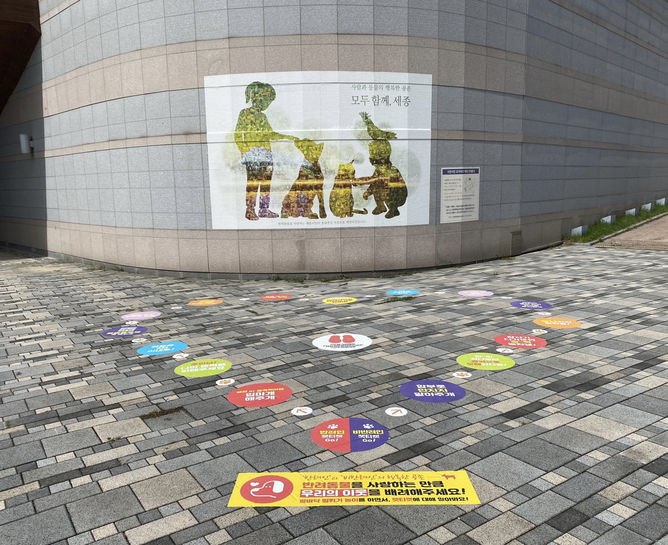 [세종타임즈] 세종특별자치시가 반려인과 비반려인 간의 인식 차이를 줄이고 성숙한 반려동물문화 정착을 위해 세종호수공원에 모자이크 벽화와 펫티켓 준수를 위한 바닥표시재를 제작·설치했다.