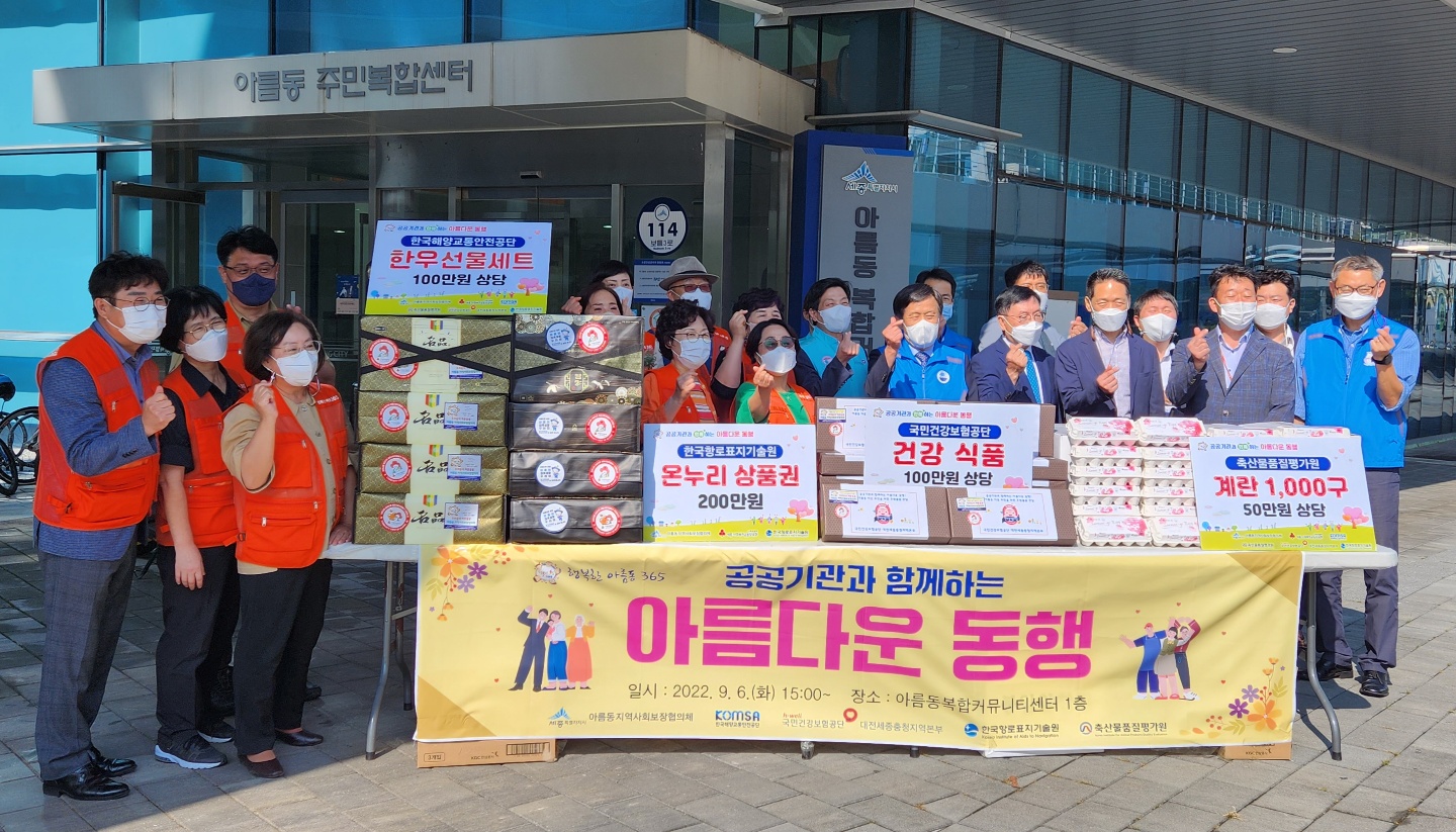 황병순 아름동장은 “취약계층에 따뜻한 정과 희망을 전달해 주신 공공기관에 감사하다”며 “앞으로도 도움이 필요한 이웃을 위해 다양하고 지속적인 나눔 활동을 이어 나가겠다”고 말했다.