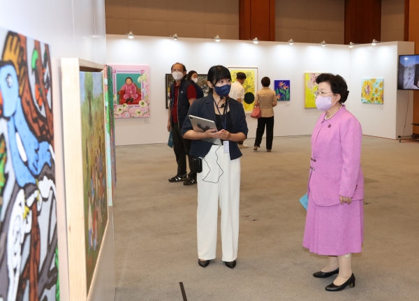 이배용 위원장은 한국장애인문화예술단체연합회 배은주 상임대표의 안내를 받아 작품을 관람하고 전시를 준비하느라 수고했다며 관계자들을 격려했다.