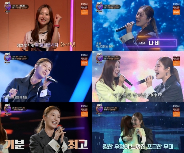 마지막으로 나비는 “육아하면서 내가 다시 나비로서 무대에 설 수 있는 기회가 있을까? 그랬던 시기에 솔지가 격려를 많이 해줬다 너무 감사하게 생각하고 있다”고 솔지를 향한 애정을 과시한 것은 물론, 함께 정인의 ‘오르막길’을 부르며 찡한 우정이 느껴지는 따뜻함으로 감동을 안겼다.