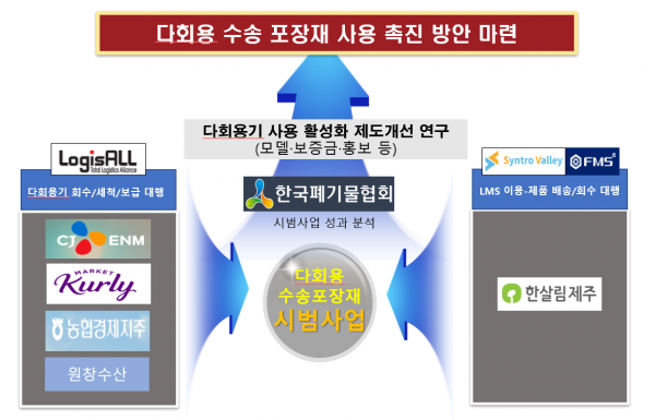 이 시법사업은 각 유통사의 배송망을 통해 택배상자를 회수해 다시 쓰는 방식이며 물류기업이 택배상자를 세척, 공급하는 방식으로 진행했다.