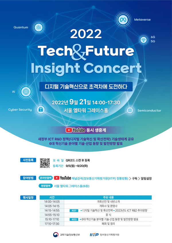 [세종타임즈] 과학기술정보통신부와 정보통신기획평가원은 9월 21일 서울 엘타워에서 디지털 기술혁신 학술회의 ‘기술과 미래’를 개최했다.