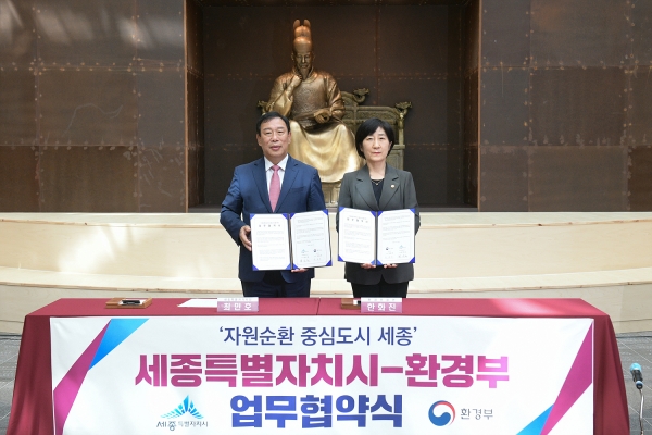 시는 23일 한글사랑 세종책문화센터에서 세종시를 자원순환 중심도시로 조성하기 위해 환경부와 ‘일회용 컵 보증금제 협약’을 체결했다.