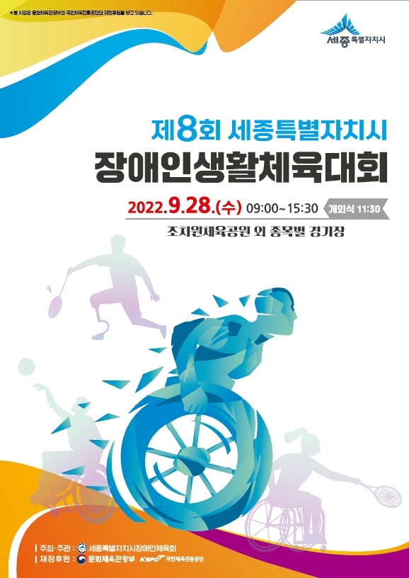 [세종타임즈] 세종시 장애인 체육 가족 모두가 하나 되는 ‘제8회 세종특별자치시장애인생활체육대회’가 오는 28일 조치원체육공원 및 종목별 경기장에서 개최된다.