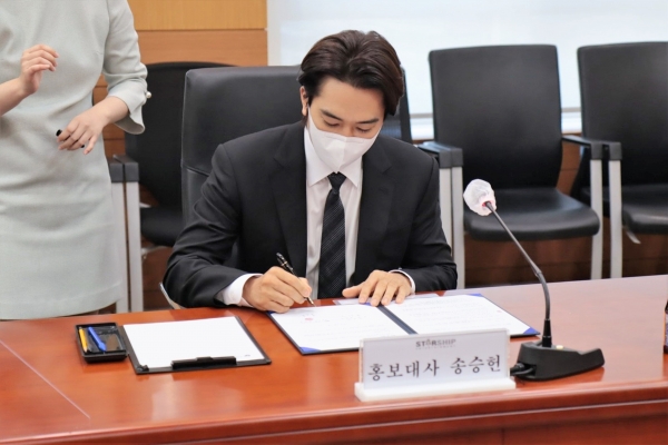 관세청은 다양한 연기 활동을 펼치는 것은 물론, 사회공헌 활동에도 적극 참여하는 배우 송승헌 씨를 홍보대사로 위촉하고 9월 26일 서울세관에서 위촉식을 가졌다.