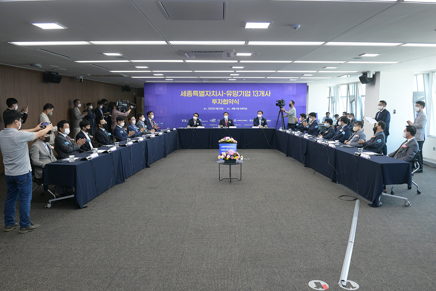 최민호 세종시장은 29일 시청에서 반도체, 의료 분야 등 기업 13곳 대표와 합동 투자합의각서(MOA)를 체결했다.