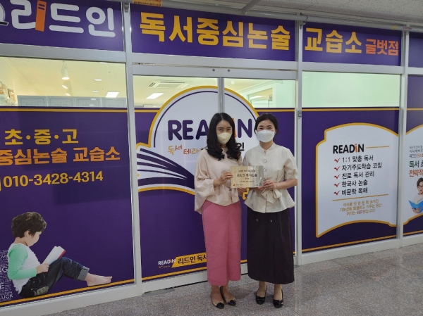 최근 ‘착한가게 6호점’으로 현판을 전달받은 곳은 리드인 독서논술로 관내 저소득가정 초등학생 2명에게 수강료 전액을 무료로 지원해 지도 중이다.