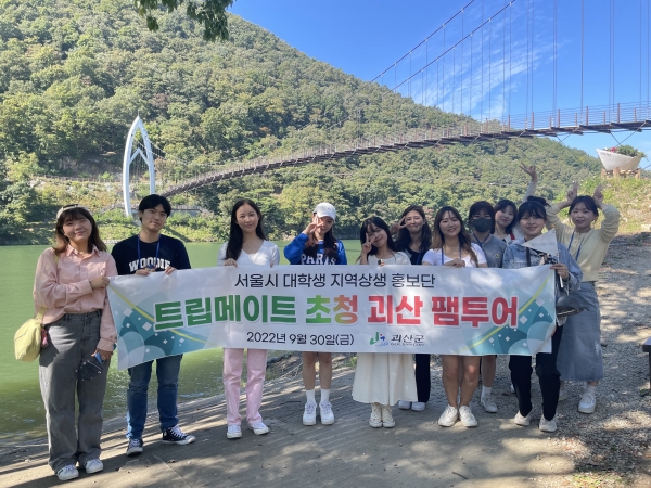 [세종타임즈] 충북 괴산군은 지난 30일 서울시 대학생 지역상생 홍보단인 ‘트립메이트’ 12명을 초청해 팸투어를 실시했다고 밝혔다.