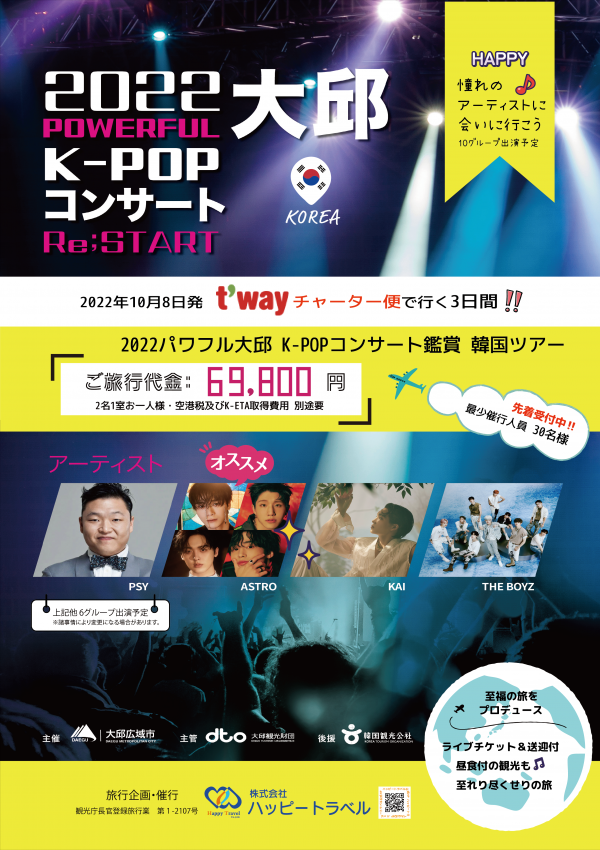 관광객들은 8일 포항에서 드라마 ‘동백꽃 필 무렵’ 촬영지와 호미곶을 방문하고 대구로 이동해 9일 저녁 더보이즈, 아스트로 등 인기 한류 아이돌들이 출연하는 ‘2022 파워풀대구 K-POP 콘서트’를 관람할 예정이다.