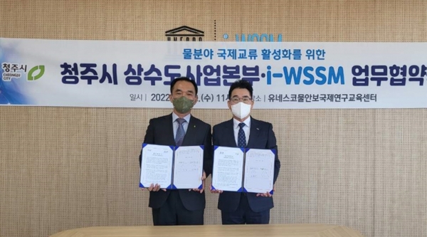 [세종타임즈] 청주시 상수도사업본부는 12일 경기도 화성시 K-water 송산글로벌교육연구센터에서 유네스코 물 안보 국제연구교육센터와 상수도 분야 국제교류 활성화를 위한 업무협약를 체결했다고 밝혔다.