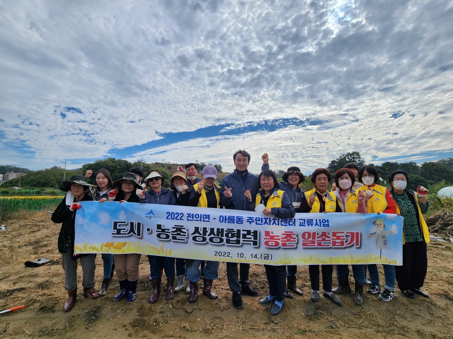 윤혜란 전의면 주민자치회장은 “수확의 계절인 풍성한 가을 아름동 주민자치회와 함께 농촌일손돕기 봉사활동을 추진해 더욱 뜻깊은 시간이 됐다”며 “앞으로도 주민자치회 간 다양한 교류의 기회를 통해 서로 소통하며 도농 상생협력을 이뤄나가길 기대한다”고 말했다.