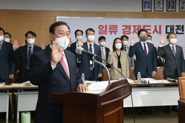 20일 대전시청에서 열린 2022년 국회 행정안전위원회 국정감사에서 이채익 위원장과 여야 의원들은 KTX 세종역 설치에 대한 최민호 시장의 계획에 대해 질의했다.