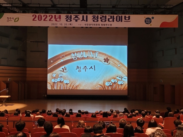 청렴라이브는 공직자가 청렴을 더 쉽고 친근하게 이해하고 실천할 수 있도록 국민권익위원회에서 2013년부터 운영해 온 문화 공연형 청렴프로그램으로 올해 청주시가 선정돼 이뤄졌다.