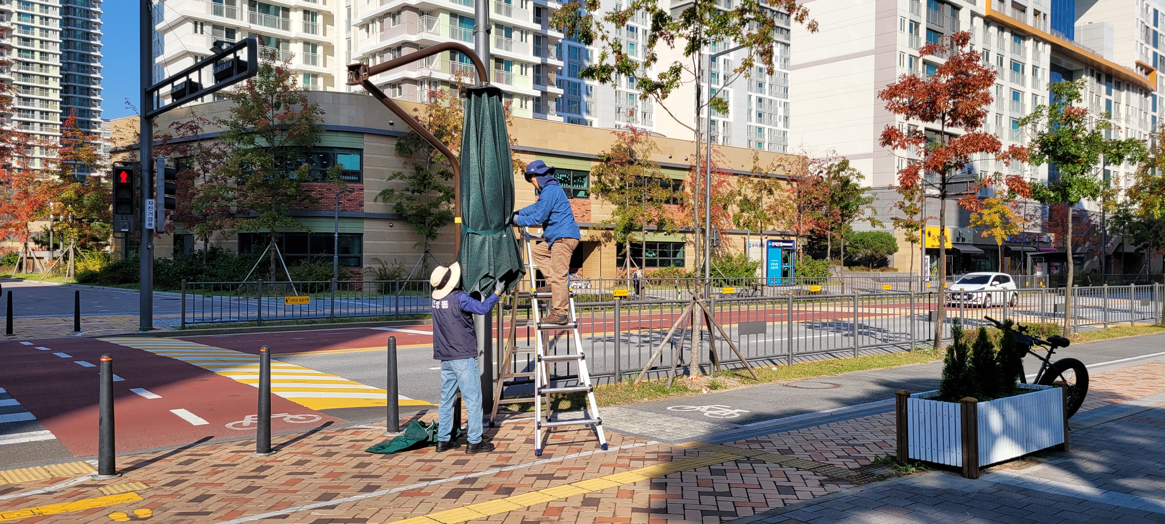 아울러 잔여 구조물로 인해 보행자 안전에 지장이 없도록 지지대 고정 및 그늘막 주변 환경정비 등을 실시했다.