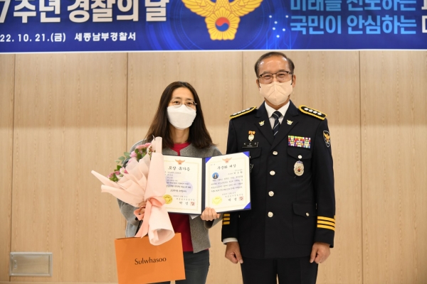 이날 기념식에는 개서 이래 두 번째 경찰의 날을 맞은 세종남부서의 역사를 돌아보는 영상물 상영 및 클래식 밴드 ‘윈드 앙상블 온율’의 공연, 업무 유공자 표창 및 협력단체 감사장 수상식을 가졌다.