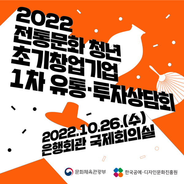 [세종타임즈] 문화체육관광부는 한국공예·디자인문화진흥원과 함께 전통문화산업 분야 청년 초기창업기업이 새로운 유통 경로를 확보하고 투자 유치를 통해 도약할 수 있도록 10월 26일 서울 은행회관에서 ‘2022 전통문화 청년 초기창업기업 유통·투자상담회’를 개최한다.