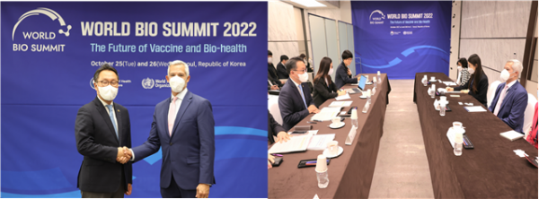 [세종타임즈] 박민수 보건복지부 제2차관은 2022년 10월 26일 오전 11시 30분 2022 세계 바이오 서밋 행사에서 혁신적 진단기기 재단 빌 로드리게즈 대표와 만나 한국의 진단기기 산업 현황과 역량, 국제공중보건 기여를 위한 협력방안을 논의했다.