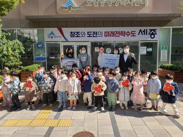 이번 후원금은 세종호려울어린이집이 지난 22일 보람뜰 공원에서 개최한 아나바다 바자회에서 학부모, 어린이 등이 사용하지 않는 장난감, 문구, 의료기기 등을 직접 판매해 마련했다.