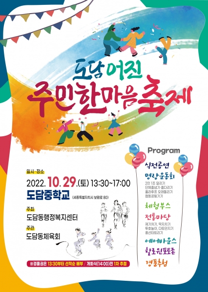 도담동은 코로나19 유행으로 3년 만에 축제를 개최하는 만큼 주민들의 일상회복과 화합을 도모하는데 중점을 두고 행사를 개최할 계획이라고 전했다.