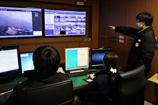 27개의 감시 카메라를 2명의 감시원이 상시 모니터링하며 관내 주요지점 11개소에 초소를 운영해 입체적인 산불감시를 수행중이다.