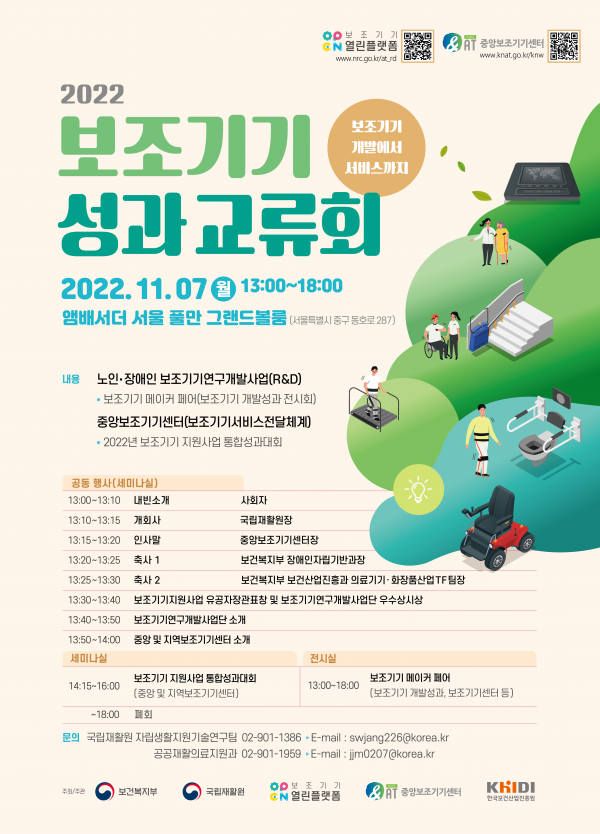 [세종타임즈] 국립재활원이 주최하는‘2022 보조기기 성과 교류회’가 11월 7일 오후 1시, 앰배서더 서울 풀만 호텔에서 열린다.