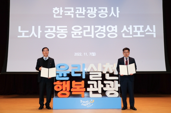 [세종타임즈] 한국관광공사와 한국관광공사 노동조합은 7일 원주 본사에서 노사 공동 윤리경영 선포식을 개최했다.
