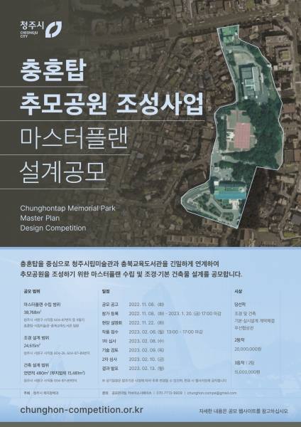 설계공모 관련 정보는 ‘충혼탑 추모공원 조성사업’ 설계공모 공식 누리집에서 확인할 수 있다.