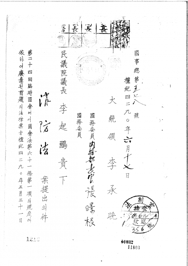 소방체계의 근간인 ‘소방법’은 1958년 제정되었는데, 여기에는 민의원에 제출했던 초안을 비롯해 수정안, 국회 제출 최종안, 심의경과표가 포함되어있다.