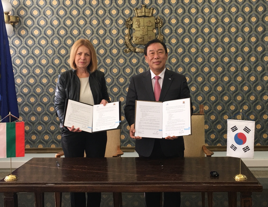 최민호 세종시장은 현지시간 9일 불가리아 소피아시청사에서 판다코바 요르단카 소피아시장과 만나 ‘세종시-소피아시 간 우호협력에 대한 협약서’에 서명했다.