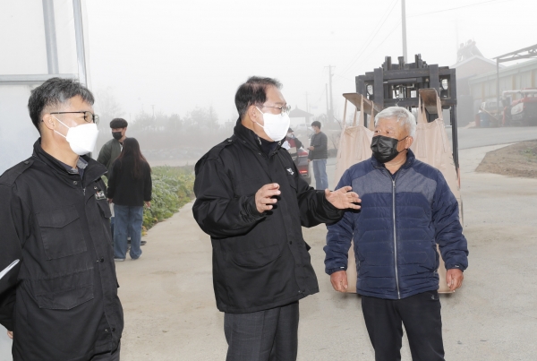 [세종타임즈] 송인헌 괴산군수가 15일 불정 육묘장을 방문해 건조벼 공공비축미곡 수매 현장을 둘러보고 있다.