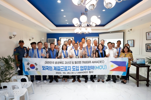 군은 지난 10월말 필리핀을 방문해 GMA 시, AMADEO시와 인력수급을 위한 업무협약을 체결했으며 괴산농협과 협력해 내년 4월부터 5개월간 30명의 공공형 계절근로자를 운영한다는 구상이다.