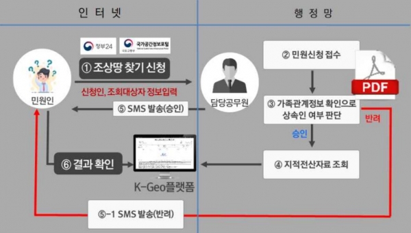 ‘조상땅 찾기’는 갑작스러운 사망으로 후손들이 조상의 토지 소유현황을 알지 못하는 경우 상속인에게 토지소재를 제공해 국민들의 재산권 행사에 도움을 주는 적극적인 토지행정 제도이다.