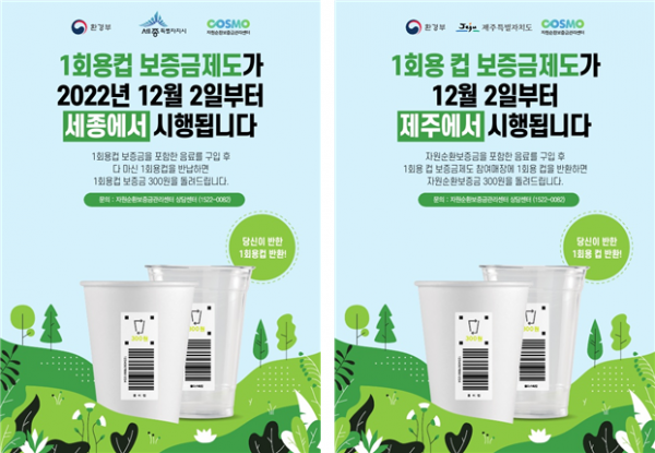 [세종타임즈] 환경부는 12월 2일 세종특별자치시와 제주특별자치도에서 시행되는 일회용컵 보증금제에 참여하는 소비자와 매장에 대해 다각적인 혜택과 지원을 제공할 계획이라고 밝혔다.
