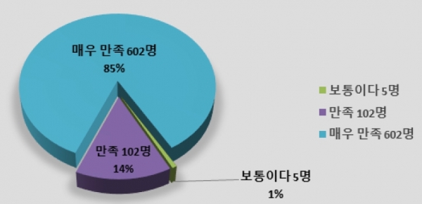 응답자 중 82%가 프로그램 내용과 진행 방법, 장소 및 시설 등에서 매우 만족한다고 응답했고 98.7%가 주변에 적극적으로 추천할 의사가 있는 것으로 나타났다.