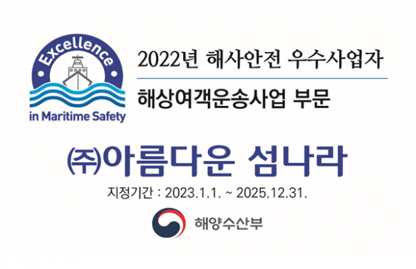 [세종타임즈] 해양수산부는 2022년 해사안전 우수사업자로 ’아름다운 섬나라‘를 선정했다고 밝혔다.