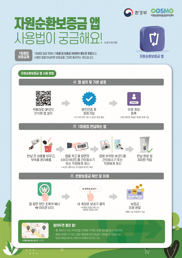 소비자는 공공장소에 설치된 회수기나 매장에서 일회용컵을 반납하고 보증금을 반환받을 수 있다.