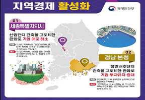 지역경제 활성화 분야에서는 건축물의 고도 제한으로 인한 기업의 애로사항을 해소해 기업경쟁력을 강화하고 지역경제 활성화에 기여한 세종특별자치시와 경상남도의 사례가 선정됐다.