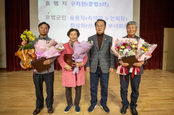 어려운 여건 속에서도 경로효친사상을 실천한 구자현 씨가 효행상을, 자랑스러운 모범군민으로는 송용직 씨, 최상희 씨가 수상했으며 문광면 발전과 축제에 공헌한 공로로 문광GS모임에 감사패가 주어졌다.