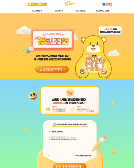 ‘금빛조연 캠페인’은 모바일을 통해 금연을 응원하는 금빛조연과 금연을 결심하는 흡연자가 함께 참여할 수 있는 참여형 이벤트이다.