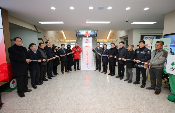 [세종타임즈] 충북 괴산군은 충북사회복지공동모금회와 함께 14일 사랑의 온도탑 제막식을 열고 ‘함께하는 나눔 지속 가능한 충북’이라는 슬로건 아래 ‘괴산군 희망2023나눔캠페인’ 행사를 개최했다.